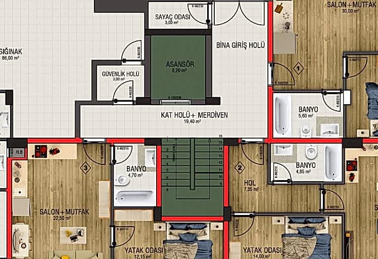 2 D Kat Planı Boyama